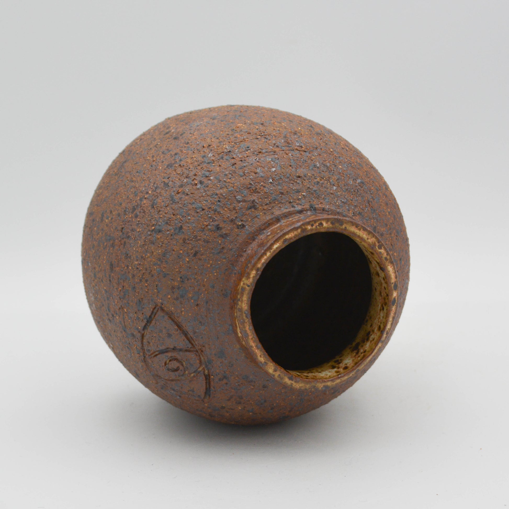 A warm, earthy vessel that brings quiet presence to any space. Its chunky form is ideal for holding a small bouquet of flowers. The interior is glazed to hold liquids safely.