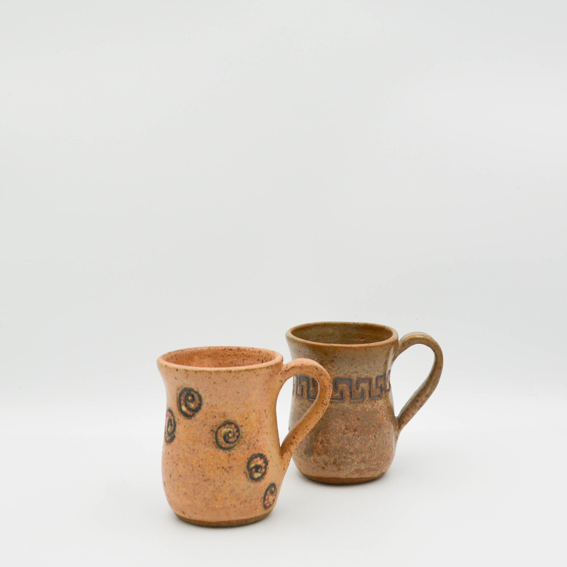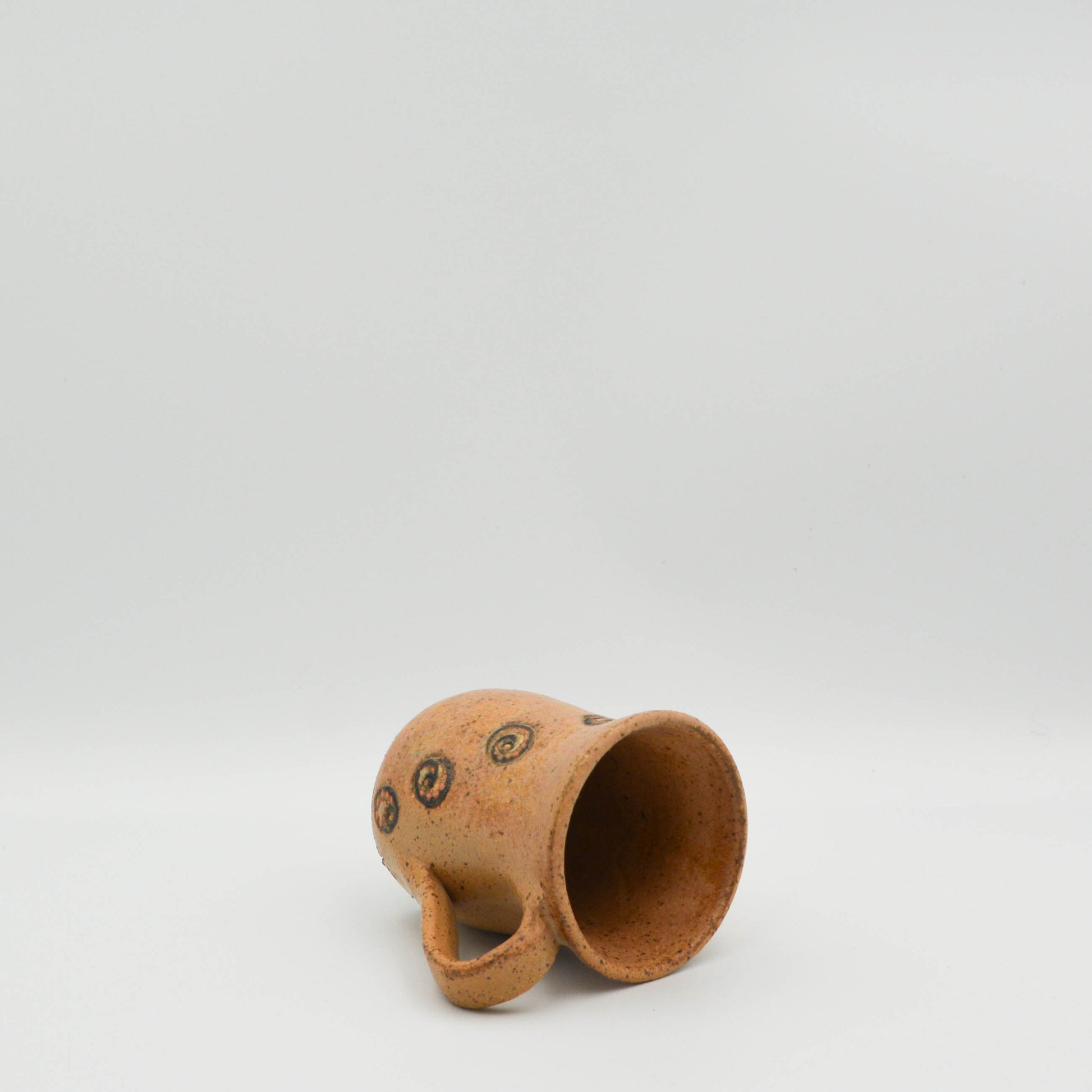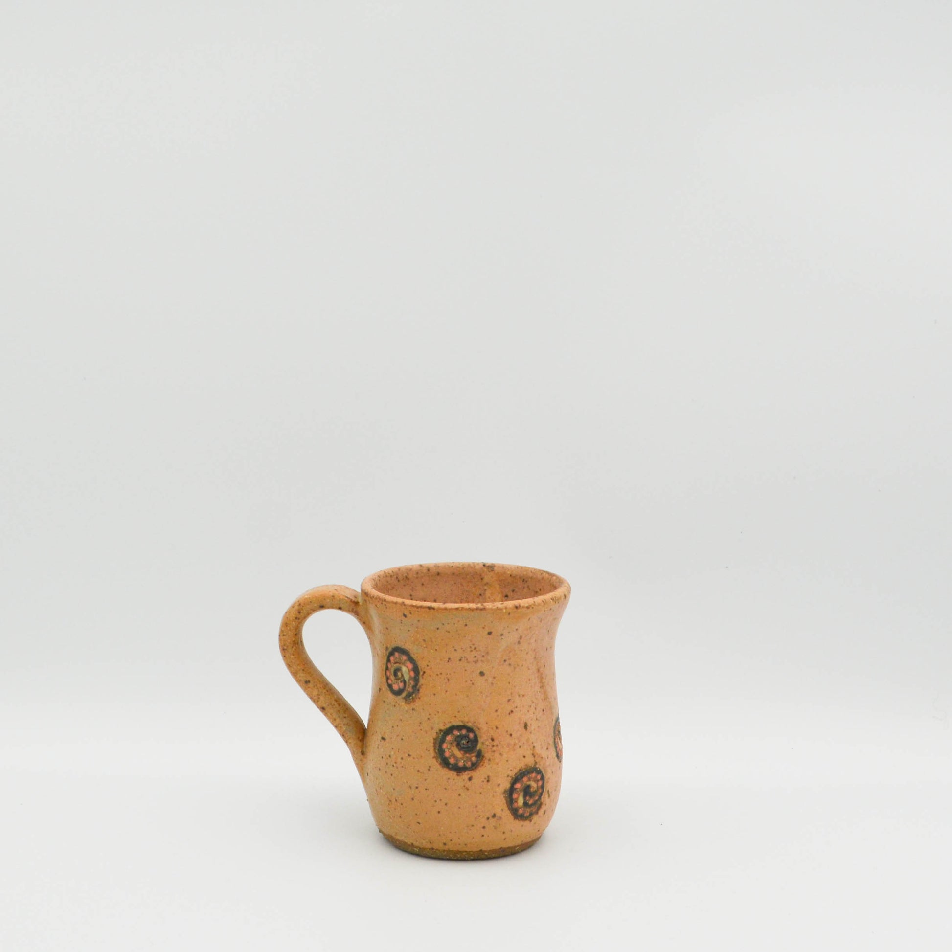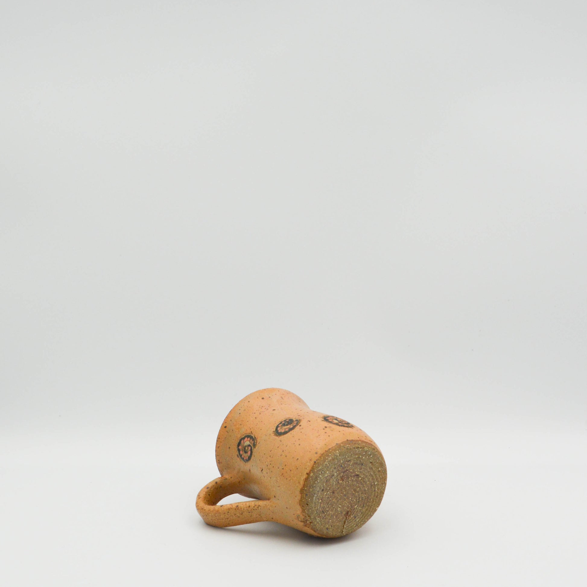 Handmade on a kick wheel from New Zealand buff clay and finished with a matte glaze, this mug features a comfortable handle and engraved spirals.