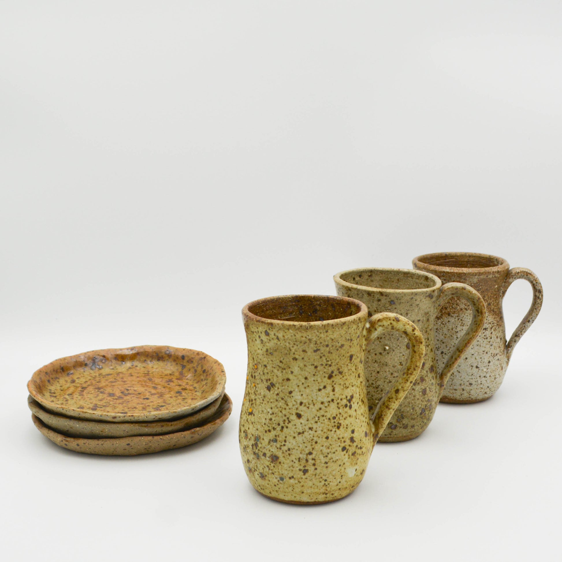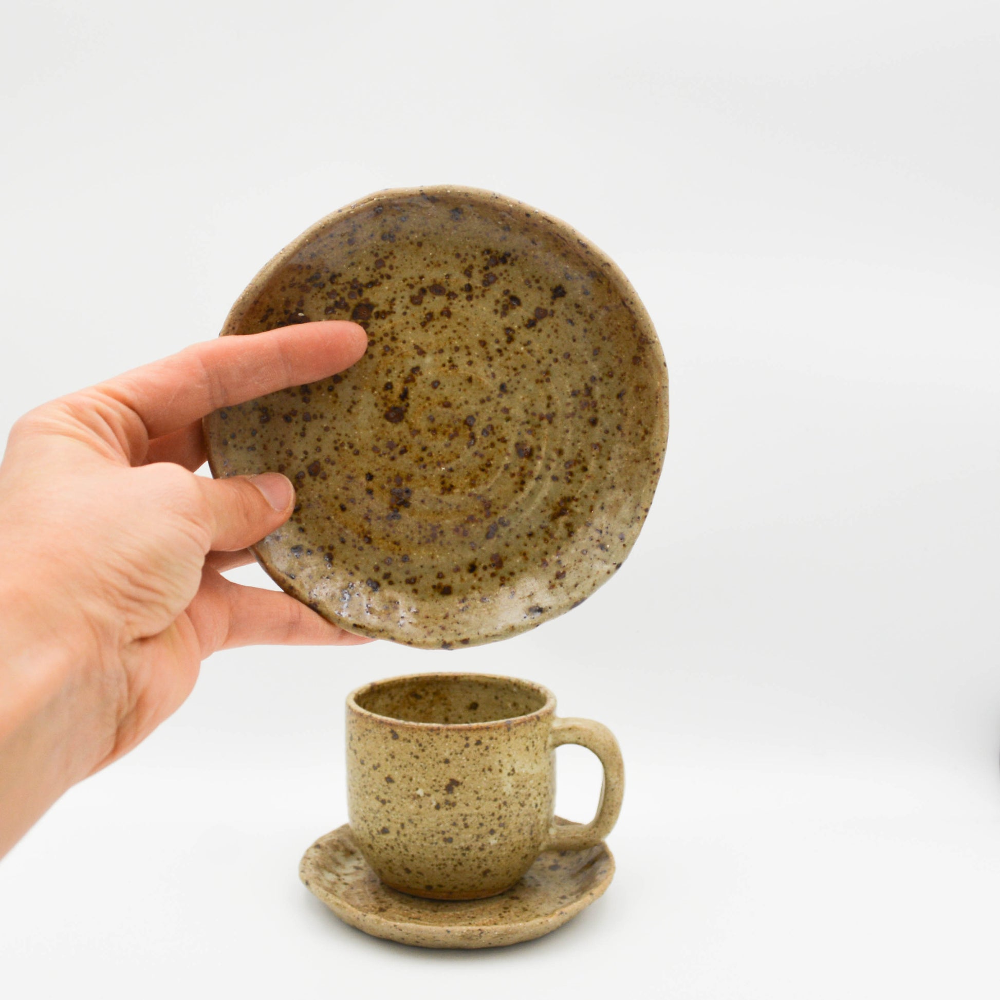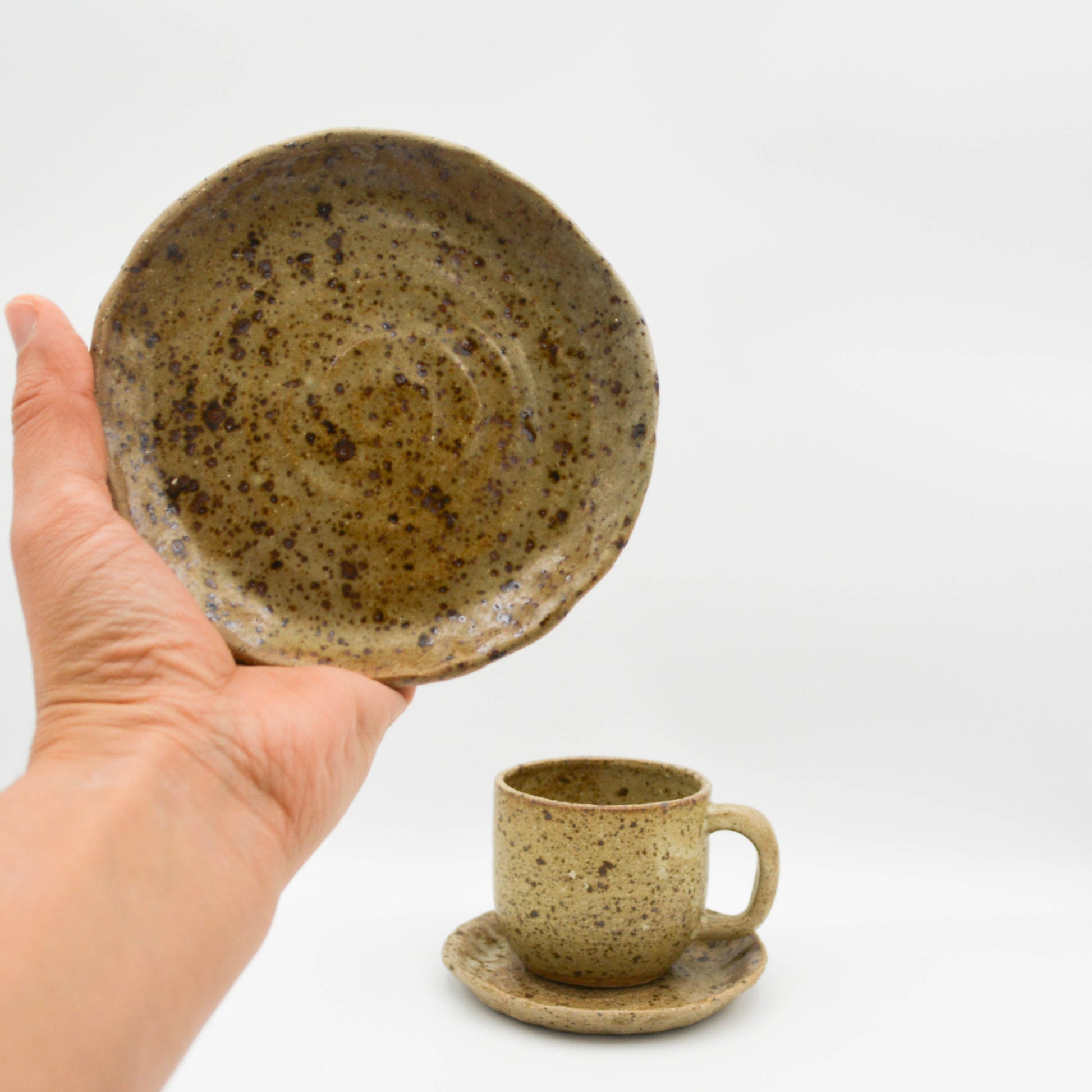 A speckled, earthy small plate, perfect for little treats, resting your cup, or serving nibbles.